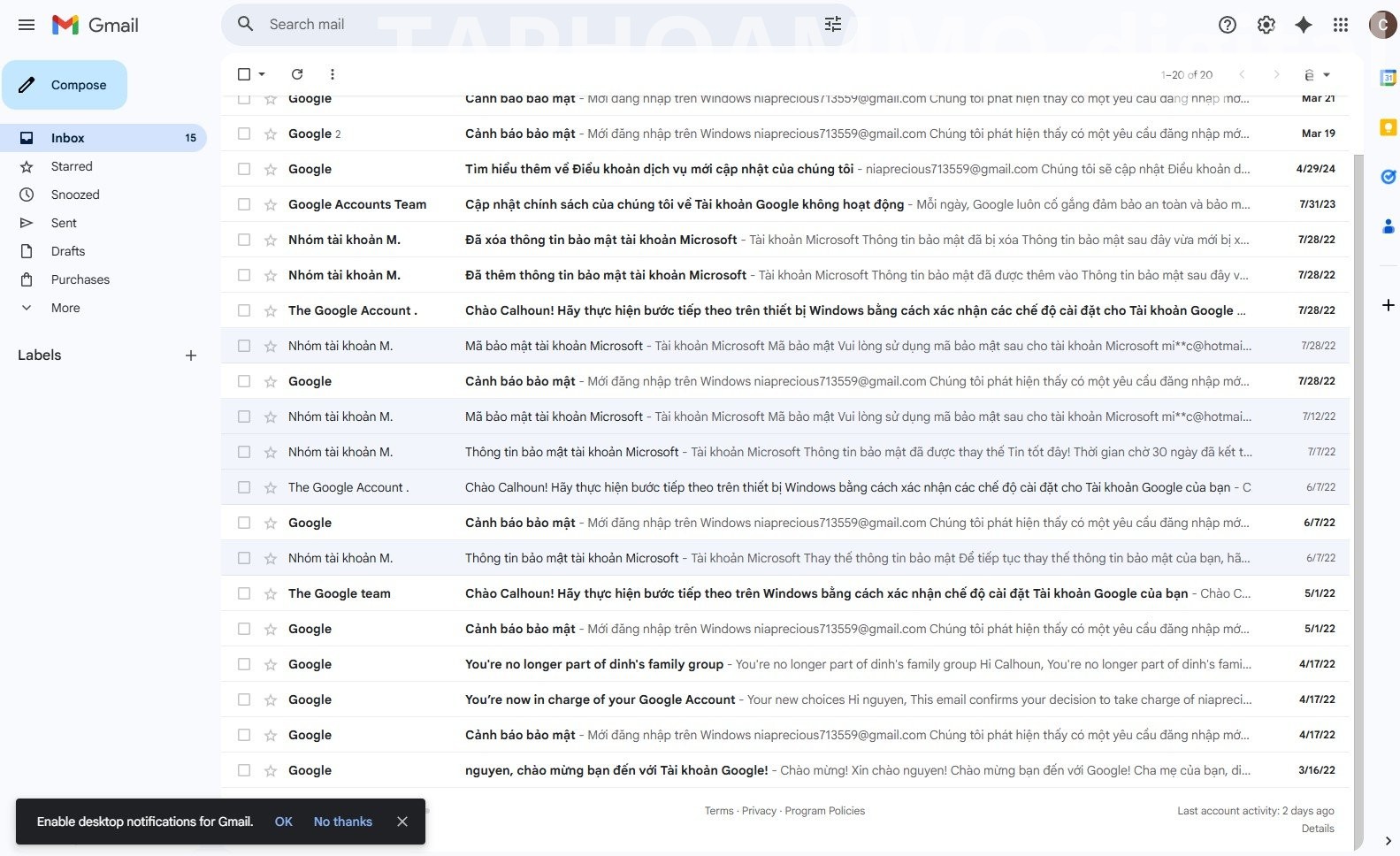 • Gmail tạo năm 2022 (mail cổ, độ trust cao)